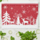 Das Küchentuch wird in einem festlichen, schneebedeckten Reh im Walddruckdesign gezeigt. Passen Sie dieses Objekt an oder kaufen Sie, wie es ist.