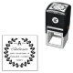 Eleganter, selbstgefälliger Stampfer mit einem stilvollen runden Lorbeerkranz mit heiligen Blätter und Beeren, der Ihr individuelles Familienmonogramm und Rücksendeadresse umrahmt.