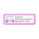 Eine lustige Ergänzung zu Ihren Ferien-Mailings. Dieses einzigartige Retro-Adressetikett besticht durch einen lustigen rosa Golfwagen, der mit hellen Retro-Urlaubsleuchten geschmückt und mit Ihrem ersten Monogramm personalisiert ist. Ihr Name und Ihre Adresse werden in einem lässigen modernen Schriftart angezeigt. Koordiniert mit unseren Golfcart-Urlaubskarten und Umschlägen.