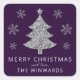 Holiday Lila & Silver Glitzer Weihnachtsbaum Quadratischer Aufkleber