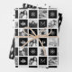 Machen Sie Ihre Urlaubsgeschenke auffällig mit unserem Foto Collage Packpapier, mit 15 Ihrer beliebten quadratischen oder Instagram Fotos in Schwarz-Weiß, geordnet in einem Rasterlayout. Fotos wechseln sich mit schwarzen Quadraten ab, die mit Schneeflocken, Weinkiefern und dem ersten Monogramm Ihres Single in Weiß geschmückt sind. Zu den Koordinationsblättern zählen Kiefern und Schneeflocken.