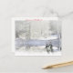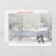 Niedlichen zwei Pinguine auf einer gefrorenen Teicheis-Skaten mit Weihnachtsmannmützen auf. Eine hübsche Szene von Schnee und Natur mit Birken und Kiefern im Hintergrund. Schicken Sie mit dieser lustigen Postkarte die Glücklichsten Urlaubswünsche.