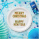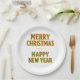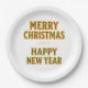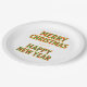 Fun festive paper plates with "Merry Christmas and a Happy New Year "on it. Lettering in a cheery red and green pattern outlined in gold. Great for holiday parties when getting together with family, friends or co-workers.