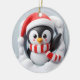 Holiday Pinguin Waving and Burning Out Keramik Ornament