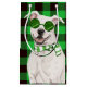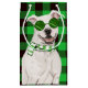 Hundefreunde werden diese niedliche und lustige Geschenktasche mit einem hübschen Gruß in einem grünen und weißen Winterschal und passender Sonnenbrille auf einem karierten gemusterten Hintergrund genießen oder verweilen.