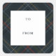 Holiday plaid navy blue to and from gift quadratischer aufkleber
