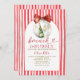 Featuring classic red watercolor stripes, a champagne bottle and glass inside a holiday ornament, and a pretty red bow, this design is perfect for a Christmas or winter bridal brunch.
