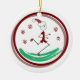 Strichmännchen Runner Typ mit seiner warmen, roten Weihnachtsmannmütze für den Urlaub bereit! Schneeflocken schwimmen von ihm während er mit Roten Schuhen und Handschuhen läuft. Großartig als Weihnachtsgeschenk!