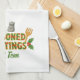 Fun, cute holiday kitchen towel, "Seasoned Greetings" with salt and pepper shakers and chef's name for the cook you love and appreciate. Festive holly, spoon and fork frame the wording on this beautiful design.
