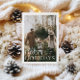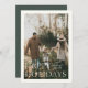 HAPPY HOLIDAYS | Foto Urlaubskarte. Moderne minimalistische Typografie in weichem Beige mit dunkelgrüner Farbunterlage.