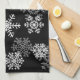 Küchenhandtuch in schwarzer Farbe mit einem Weihnachtsschneeflockenprint. Passen Sie dieses Objekt an oder kaufen Sie, wie es ist.
