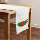 Der Holiday Table Läufer wird mit einem festlichen Poinsettia Garland Print gezeigt. Farbe weiß