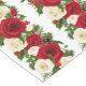 Dieser Tischläufer wird mit einem schönen Weihnachtsfeiertag in Rot-Weiß-Rose und Beeren-Druck gezeigt. Farbe weiß Größe 14 Zoll x 72 Zoll