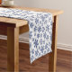 Der Holiday Table Läufer wird mit einem festlichen Schneeflockenprint gezeigt. Farbe Weiß-Marine Passen Sie dieses Objekt an oder kaufen Sie, wie es ist.