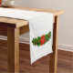 Der Holiday Table Läufer wird mit einem festlichen Poinsettia Garland Print gezeigt. Farbe weiß