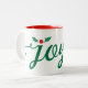 Sage glücklichen Urlaub mit dieser festlichen Freude Tasse. Holly Akzent.