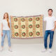 Classic holiday comfort in a timeless knit-look pattern of green Christmas trees and red Cream-colored knit-look design with a central holiday wreath, bright red bow, and garland borders. A vintage-cozy favorite.