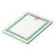 This product is a white notepad or stationery sheet featuring a green wreath border and a red bow at the top. It is a "holiday notepad," "Christmas stationery paper," "wreath memo pad," "seasonal writing paper," and "red and green border notepad." It fits into themes of "Holiday/Seasonal" and "Stationery & Paper Goods," specifically featuring the classic Christmas motifs of "Wreaths," "Foliage/Botanicals," "Bows," and the "Red and Green Color Palette."