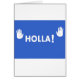 Berühmter blauer Hintergrund mit "Holla" druckte im Weiß u. in 2 Händen, die das Dach auf der Seite anheben.