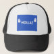 Berühmter blauer Hintergrund mit "Holla" druckte im Weiß u. in 2 Händen, die das Dach auf der Seite anheben.