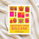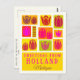 Farbenfrohe Postkarte aus Holland, Michigan, USA, mit roten und hellrosa Tulpengelben Blume auf gelbem Hintergrund. Schöne Gruß oder Souvenirkarte für Holland Einwohner, Besucher, Touristen oder Fans.