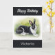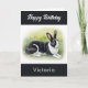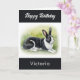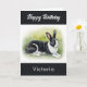 Senden Sie Geburtstagswünsche mit dieser niedlichen Hasen-Grüße-Karte. Die Karte zeigt ein schwarz-weißes holländisches Kaninchen auf einem Rasen in elegantem Aquarellstil. Oben befindet sich der Gruß "Happy Birthday", der auch in der Karte erscheint. Personalisieren Sie den Namen des Empfängers für eine stilvolle Touch. Eine moderne und elegante Karte für Kaninchenbesitzer und Tierfreunde.