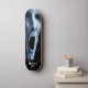 Hollow-eyed phantom witch etching on blue-black skateboard