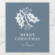 Holly and Berries Blue Christmas Weinetikett