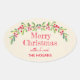 Holly and Berries on Ivory Christmas Holiday Ovaler Aufkleber