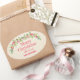 Personalized holiday Christmas OVAL stickers with a stylish, modern watercolor of green holly and red berries on a pale ivory stripe background with your greeting and info in chic lettering. MATCHING items in our store.