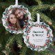 Erstellen Sie einzigartige Weihnachtskarten, die sich als Weihnachtsschmuck verdoppeln! Dieses individuelle Design bietet einen festlichen Aquarellkranz in Rot, Grün und aquamarin rund um Ihr gewünschtes Foto. Die Rückseite der Karte wiederholt das hübsche Kranzdesign und enthält eine Textvorlage mit "Verheiratet & Merry"-Text sowie die Namen und das Jahr der Paare. Ihre Freunde und Verwandten werden dieses besondere Kartendekor jedes Jahr auf dem Baum hängen und sich an die Freude erinnern, die Sie sich als frisch vermählte Ehemann und Ehefrau an Ihrem ersten Weihnachtsfest gefühlt haben.