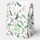 Hier ist eine hübsche Gefälligkeitsbox für die Weihnachtszeit, die ein farbenfrohes, heiliges Blatt und rotes Beerenmuster aufweist. Das vorwiegend grüne und rote Muster wird auf einem weißen Hintergrund platziert. Auf einer Seite der Schachtel befindet sich ein grünes, grenzenloses Banner, das "Frohe Weihnachten" sagt. Wenn Sie es vorziehen, können Sie die Textfelder vor der Bestellung ausfüllen und mit dem leeren Banner einen Namen schreiben. Es liegt an dir!