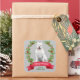 Auf diesen Holiday Korrespondenzaufklebern ist ein Porträt eines weißen Pitbull Hundes umgeben von einem roten Beerenholzkranz. Am unteren Rand ist ein rotes Banner mit Ihrem individuellen Weihnachtsgrüßen, und Ihre Unterschrift ist grün darunter.