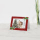 Elegante Weihnachtskarte aus rotem Foto mit einem Aquarellbild von Heiligen und Beeren. Fügen Sie einfach Ihr Lieblings-Foto hinzu, ändern Sie den Text, oder die Hintergrundfarbe dieser benutzerdefinierten rot gefalteten Ferienkarte.