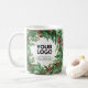 Easily personalize this Holly Berry Christmas Custom Business Logo Text MUG with text, company or party name, and business logo, photo or any image. A cute vintage business design in black and white colors featuring watercolor mistletoe branches and holly berries, a large logo, fully customizable, sans-serif basic and modern fonts and a professional and clear look. Background color and fonts are totally customizable. A beautiful favors idea for your holiday company party and celebrations, for wedding, bride to be, baby shower, or for saying thank you to your guests as airbnb, hotel or hostels owner, real estate agent, kid's doctor or therapist, or any professional business. No minimum order.