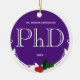 Ein Ornament für einen Doktortitel mit lila-weißem Farbschema und einer Verzierung mit Heiligenbeere und Blättern. Es zeigt den Grad, den Namen und das Jahr. Einfach anpassen Sie dieses Ornament, fügen Sie es in Ihren Warenkorb, und haben Sie einen Hang zu dieser großen Leistung Holly Berry Lila White PhD Abschluss Name Jahr Keramik Ornament Holidayday-Design | ©Melissa Patton - Designer