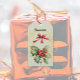 Holly mit rotem Band. Anpassbarer Text vor und zurück, die Hintergrundfarbe kann geändert werden. Auswahl der Zeichenfolge.