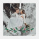 Decorate your Christmas tree with your wedding photo by personalizing this square photo ornament with photo and your monogram above a folksy half wreath of holly with leaves and berries.