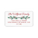 Give your outgoing mail a bit of holiday cheer with these holly-themed Christmas return address label personalized with your name and address, with a pretty holly divider with green leaves and red berries.