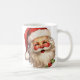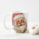 Eine Tasse mit einer fröhlichen Illustration eines Vintagen Weihnachtsmannes mit roten, roten Wangen, der seine klassische rote Weihnachtsmannmütze und seinen großen weißen Bären trägt. Der heilige Geist dieses Designs wird durch einen Hauch von Heiligenschein unterstrichen.