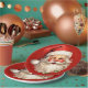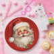 Papier Teller mit einer fröhlichen Abbildung eines Vintagen Weihnachtsmannes mit roten, roten Wangen, mit seiner klassischen roten Weihnachtsmannmütze und seinem großen weißen Bär. Der heilige Geist dieses Designs wird durch einen Hauch von Heiligenschein unterstrichen.