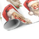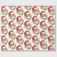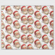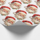 Umschlagpapier mit einer fröhlichen Illustration eines Vintagen Stil Weihnachtsmann mit roten rosa Wangen. Tragen Sie seine klassische rote Weihnachtsmannmütze und seinen großen weißen Bart. Der heilige Geist dieses Designs wird durch einen Hauch von Heiligenschein unterstrichen.