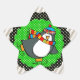 Holly Jolly Skaten Pinguin Stern-Aufkleber mit grauem und weißem diagonalem Streifen Hintergrund mit einem grün-schwarzen Zentrum mit weißen Polka-Punkten und einem niedlichen und farbenfrohen Pinguin mit Eis-Skaten, Hut und gestreiftem Winterschal! Wir haben passende Umschläge, Grußkarten, Labels und Briefmarke für Porto! com