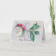 Diese Weihnachtskarte hat eine persönliche Touch mit individuellem Text und hübschen pastellfarbenen Bildern, die einen Hauch von immergrünen Heiligen mit hellen roten Beeren darstellen, die durch einen blass-braunen Lavendelbogen ergänzt werden.