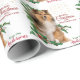 Dieses hübsche personalisierte Weihnachtsgeschenkpapier zeigt einen Shetland Sheepdog, der vor heiligen, mit roten Beeren beladenen Früchten sitzt. Im roten Text rechts steht: "NUR Weihnachten und GLÜCKLICHES NEUES JAHR". Ihr benutzerdefinierter Text befindet sich unten. Ein Sprinklen von goldenen Konfetti im Hintergrund fügt ein wenig Funkeln hinzu, und das Muster wird über die Oberfläche des Papiers wiederholt.