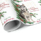 Dieses hübsche personalisierte Weihnachtsgeschenkpapier zeigt einen sibirischen Husky-Hund, der vor heiligen, mit roten Beeren beladenen Früchten sitzt. Im roten Text rechts steht: "NUR Weihnachten und GLÜCKLICHES NEUES JAHR". Ihr benutzerdefinierter Text befindet sich unten. Ein Sprinklen von goldenen Konfetti im Hintergrund fügt ein wenig Funkeln hinzu, und das Muster wird über die Oberfläche des Papiers wiederholt.