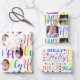 HOLLY Script Regenbogen auf White 4 Foto Weihnacht Geschenkpapier Set