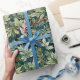 Ein gemaltes Bild auf Jägergrün aus heiligen Ästen, Fichten und Sprinklen aus weißem Schnee. Nahtloses Bild.