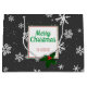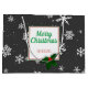 Feierliche und moderne personalisierbare Weihnachtsgeschenktüte. Personalisieren Sie die Geschenktasche mit Ihrem Text und Namen. Der Text Frohe Weihnachten ist in einem trendigen grünen Skript. Weihnachtsbaumbeere macht dieses Design festlich. Schöne weiße Schneeflocken sind auf einem festlich grauen Hintergrund.