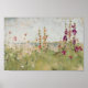 © Cheri Blum / Wilder Apple. Hollyhocks am Meer, zusammen mit grünem Gras. Ein blauer Himmel ist im Hintergrund zu sehen.